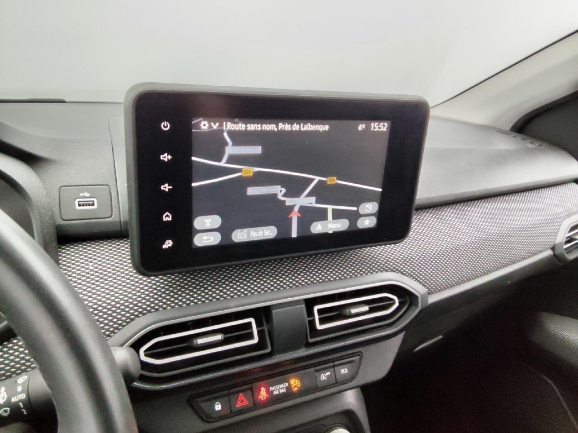 3 appuis-têtes AR Aide au parking AR Airbag frontal conducteur et passager Airbag frontal passager désactivable Airbag latéral AV : thorax + rideau Allumage des feux et essuie-glace automatiques Assistance au freinage d'urgence + allumage des warnings Banquette AR avec dossier rabattable en portefeuille 1|3 -2|3 Barres de toit modulables Bouton appel d'urgence E-call Clé 3 boutons Climatisation manuelle Cluster TFT Condamnation centralisée des portes Condamnation des ouvrants en roulant Console basse + rangement ouvert Détection de pression des pneus Eclairage du coffre Eclairage plafonnier AR Enjoliveur 16'' Saria Enjoliveurs bas de porte coffre Feux anti brouillard Feux de jour à LED Filtre à particules Lève-vitre conducteur électrique impulsionnel Lève-vitres AR électriques Media display (écran 8'', réplication... Mode éco Ordinateur de bord Prise accessoire en rang 3 Régulateur de vitesse Rétroviseur intérieur jour|nuit Rétroviseurs extérieurs Rétroviseurs extérieurs réglables électriquement... Rappel de bouclage de ceintures Sellerie avec surpiqures grises Siège conducteur réglable en hauteur + accoudoir... Signature lumineuse DACIA en Y à LED Système anti-blocage des roues (ABS) Système de contrôle de trajectoire (ESC) et aide... Système de fixation Isofix Système de freinage d'urgence autonome à des... Vitres, portes AR, custode et lunette AR surteintées Volant réglable en hauteur et en profondeur Volant Soft Feel TEP
