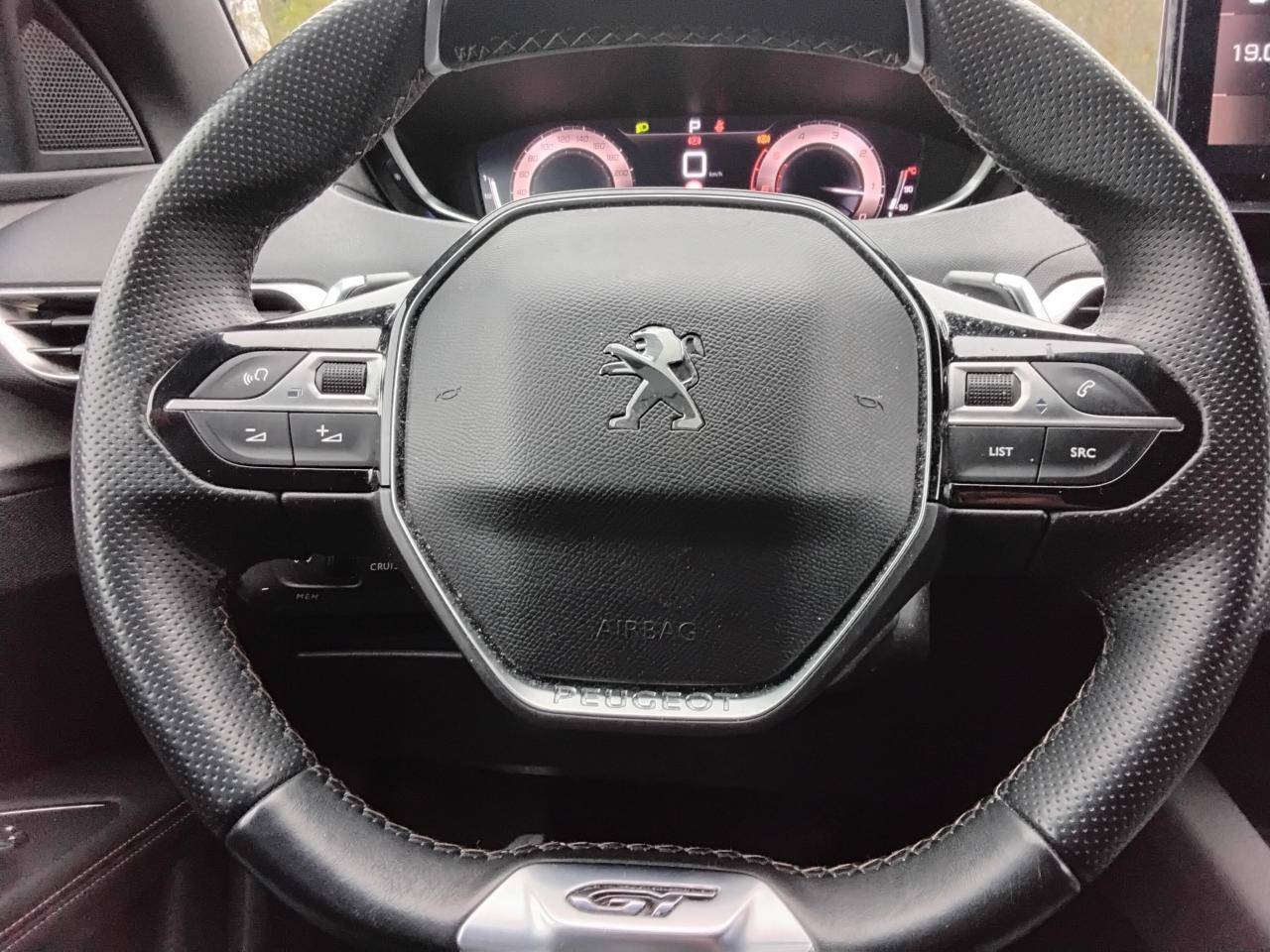 Accès et démarrage mains-libresAccoudoir central avant à ouverture papillon, avec compartiment de rangement éclairé et réfrigérableAir conditionné automatique bi-zone avec aérateurs aux places arrièreAirbags frontaux conducteur et passager adaptatifs (airbag passager déconnectable)Airbags latéraux conducteur et passager avantAirbags rideaux de tête aux places avant et arrièreAppuis-tête à sécurité optimisée réglables en hauteur sur les sièges conducteur et passager avant ainsi que sur les places latérales arrièresAvertisseur de temps de conduiteBanquette rabattable 1/3 - 2/3 (commandes dans le coffre) avec accoudoir et trappe à skisBarres de toit longitudinales en aluminiumCalandre GT avec design évolutif chroméCanules d'échappement de style chroméesCoques de rétroviseurs extérieurs Noir Perla NeraDécors de planche de bord et panneaux de portes en Alcantara Gris GrevalDétection de sous-gonflage indirecteDirection assistée électrique, avec colonne de direction réglable en hauteur et profondeur (mécanique)Drive Mode : Choix de 2 modes de conduite (Eco ou Sport)Driver Sport PackEnjoliveurs d'arc de pavillon en inoxEssuie-vitre avant avec système de lavage 'Magic Wash'Feux arrière LED 3D avec clignotants arrière défilantsFixation Isofix pour siege passager AVFixations Isofix aux places latérales arrièreFonction 'Mirror Screen' (Apple Carplay / Android Auto)Frein de stationnement électrique avec aide au démarrage en penteHabitacle et ciel de pavillon Noir MistralIndicateur de rapport conseilléInserts d'ailes avant chromésJantes alliage 18" 'Detroit' bi-ton diamantées Noir OnyxJoncs de vitres latérales en inoxKit de dépannage pneumatiqueLève-vitres électriques avant et arrière, séquentiels et antipincementLunette arrière surteintée chauffanteNavigation 3D connectée avec reconnaissance vocale, écran tactile capacitif 10" HD avec carte SIMPack City 1Pack Eclairage d'ambiancePack Safety PlusPack VisibilitéPare-soleil avec miroirs de courtoisie éclairésPassages de roues Noir MatPédalier et repose-pied conducteur en aluminiumPeinture métallisée Bleu CélèbesPEUGEOT Connect SOS & Assistance et TéléservicesPeugeot i-Cockpit combiné tête haute numérique reconfigurable,et volant compact multi-fonctionsPlafonnier avant et arrière à LED avec 2 spots de lecturePlancher de coffre deux positionsPoches aumônières au dos des sièges avantPrises 12V (x3 : zone connectique, arrière de console et coffre)Prises USB de charge (x2) au 2nd rangProjecteurs 'Peugeot Full LED Technology' avec correction automatique de site, fonction Eclairage Virage Statique,'Foggy Mode' et feux diurnes à LED prolongés dans les projecteursProtecteurs de bas de portes avec inserts Inox BrillantReconnaissance étendue des panneaux de circulationRétroviseur intérieur électrochrome sans contourRétroviseurs extérieurs réglables, rabattables électriquement et dégivrantsSabot de pare chocs avant peint Gris LionSécurité enfant électrique des vitres arrièreSellerie Mi-TEP/Tissu BelomkaSeuils de portes avant en inoxSiège conducteur avec réglage lombaireSiège passager avant avec mise en tabletteSièges avant réglables en hauteurSurtapis aux places avant et arrièreToggle Switches' chromés (touches 'piano' d'activation des fonctions de l'écran tactile)Toit Black DiamondVitres latérales AR surteintéesVolant cuir fleur perforé avec bagues chrome acier et badge GT